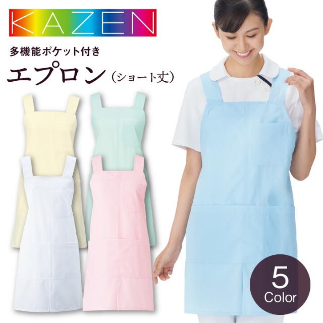 カゼン ショート丈エプロン 男女兼用 医療用 病院 看護師 ナース 介護士 福祉施設 ヘルパー 栄養士 保育士 幼稚園教諭 工業洗濯対応 ネコポス kz-914