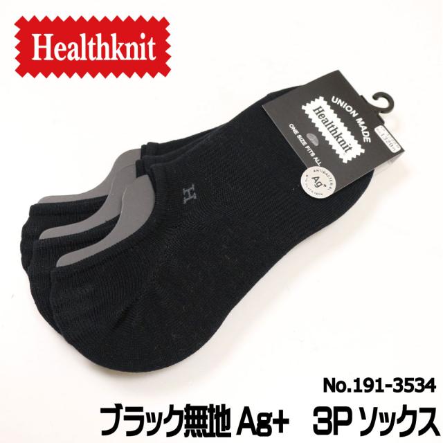 メール便発送 Healthknit ヘルスニット 靴下 ブラック 無地 Ag+ 銀イオン 3Pソックス メンズ 3足セット くるぶし スニーカーイン 191-3534