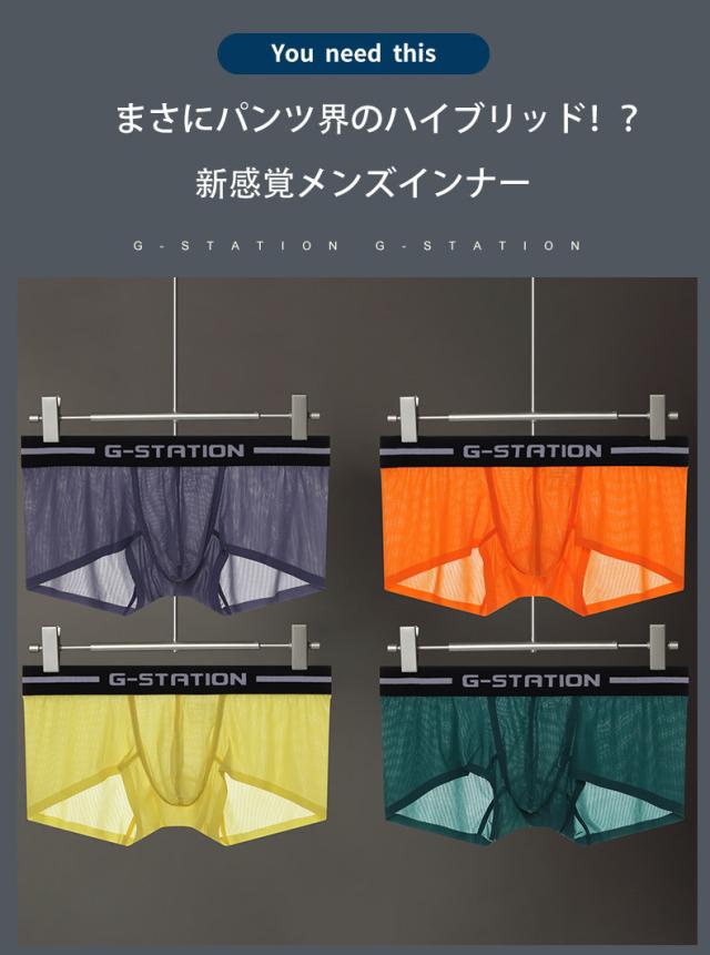 【G-Station/ジーステーション】ウルトラライト透けリブ ボクサーパンツ メンズ 男性下着 薄手 透け 軽量 立体縫製 タグレス