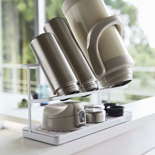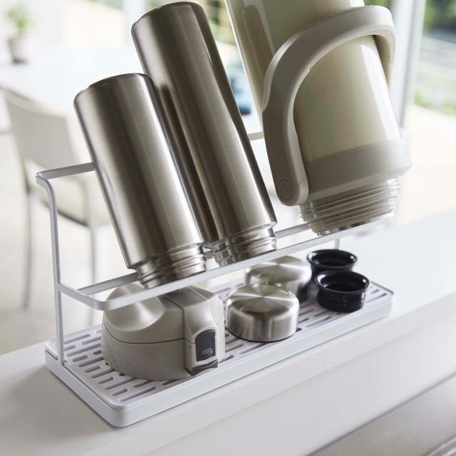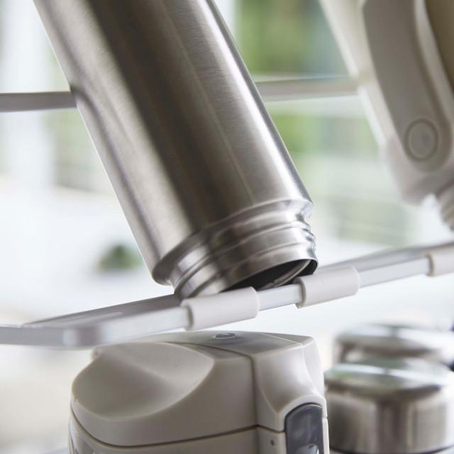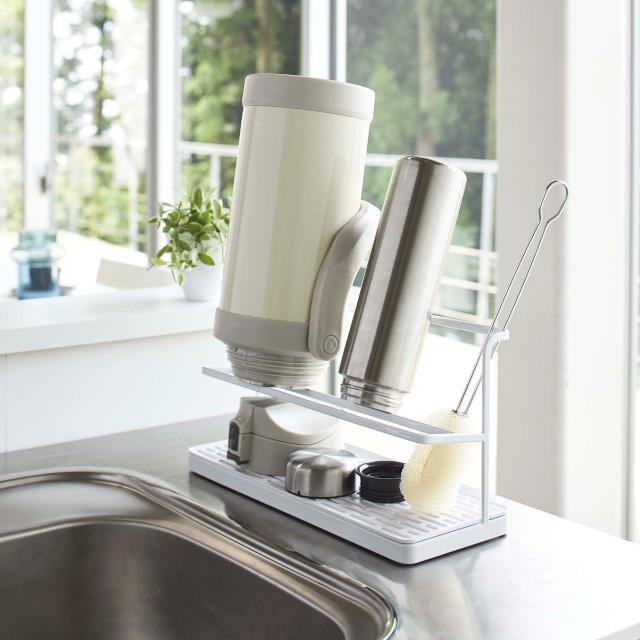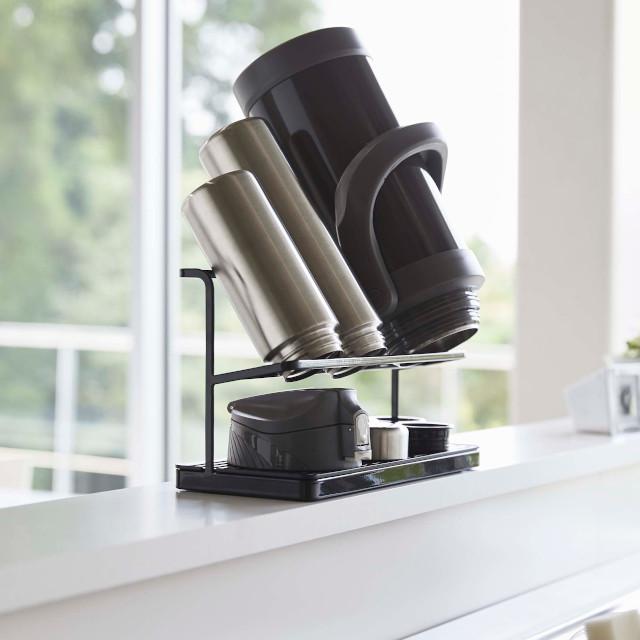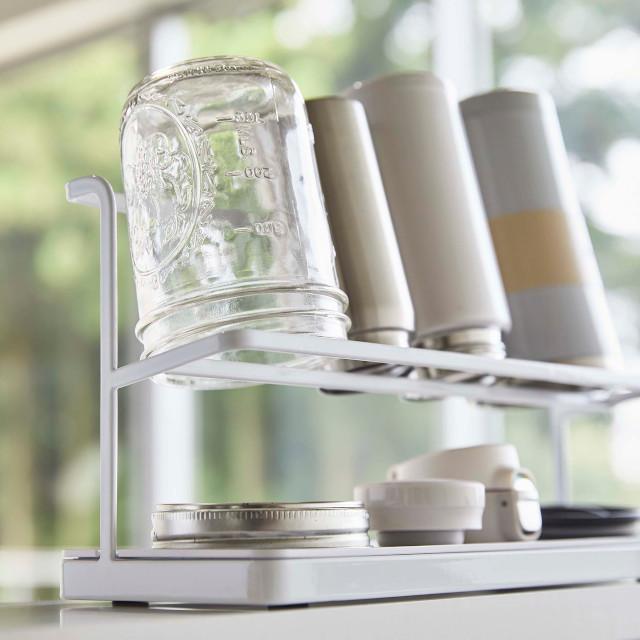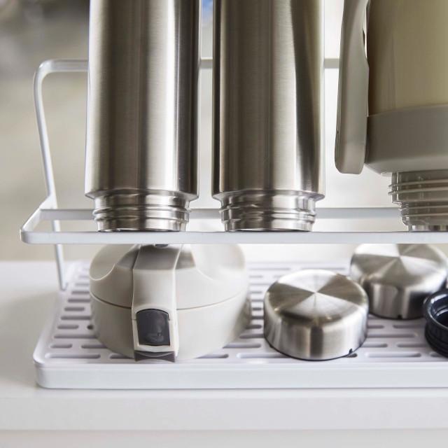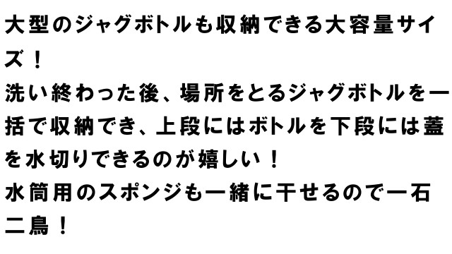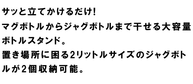 サッと立てかけるだけ! マグボトルからジャグボトルまで干せる大容量ボトルスタンド。