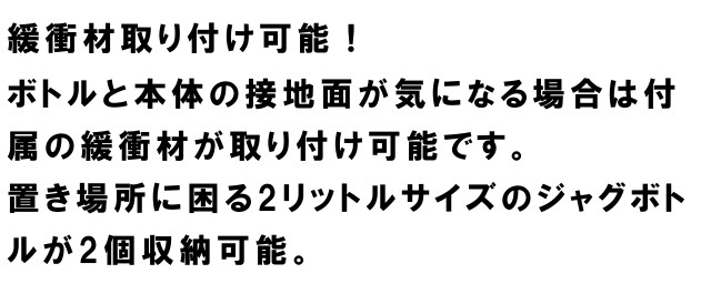 置き場所に困る2リットルサイズのジャグボトルが2個収納可能。