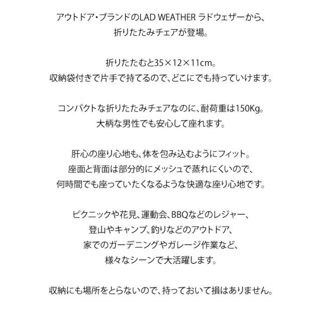 LAD WEATHER ラドウェザー キャンプやアウトドアで活躍!人気のアウトドア・チェア