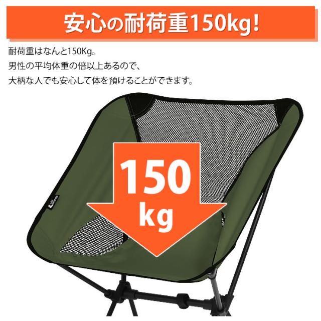 コンパクトな折りたたみチェアなのに、耐荷重は150Kg。
