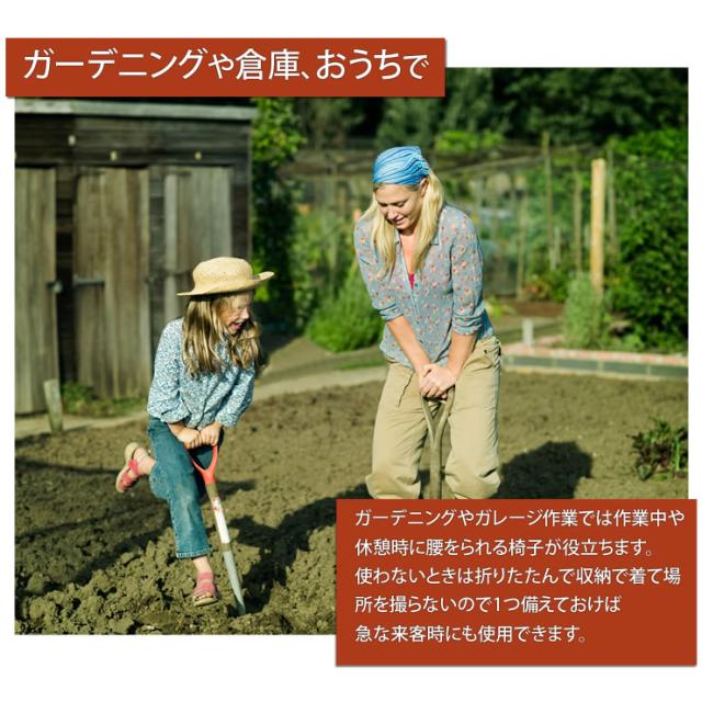 ガーデニングやガレージ作業では作業中や休憩時に腰をられる椅子が役立ちます。