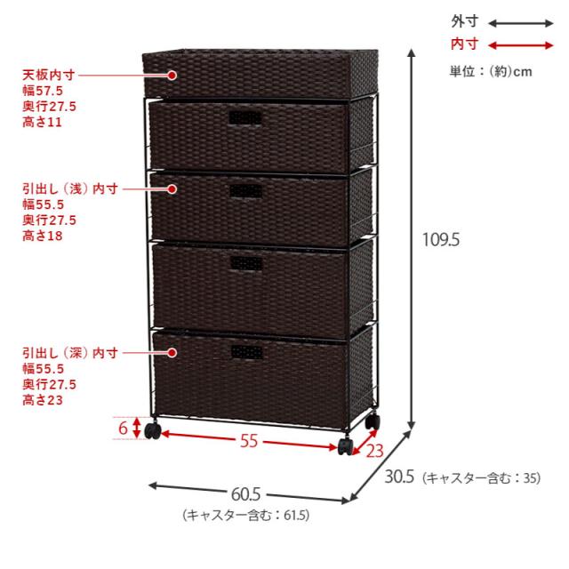 ■内寸サイズ:カゴ部/(幅)57.5cm×(奥行)27.5cm×(高さ)11cm