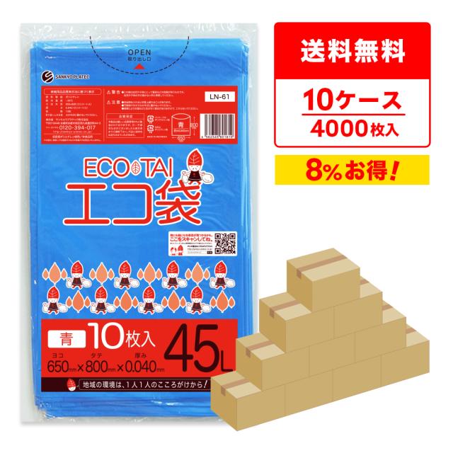 【まとめて10ケース】LN-61-10 ポリ袋 45リットル 0.040mm厚 青 10枚x40冊x10箱 / ゴミ袋 ごみ袋 送料無料