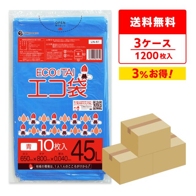 【まとめて3ケース】LN-61-3 ポリ袋 45リットル 0.040mm厚 青 10枚x40冊x3箱 / ゴミ袋 ごみ袋 送料無料