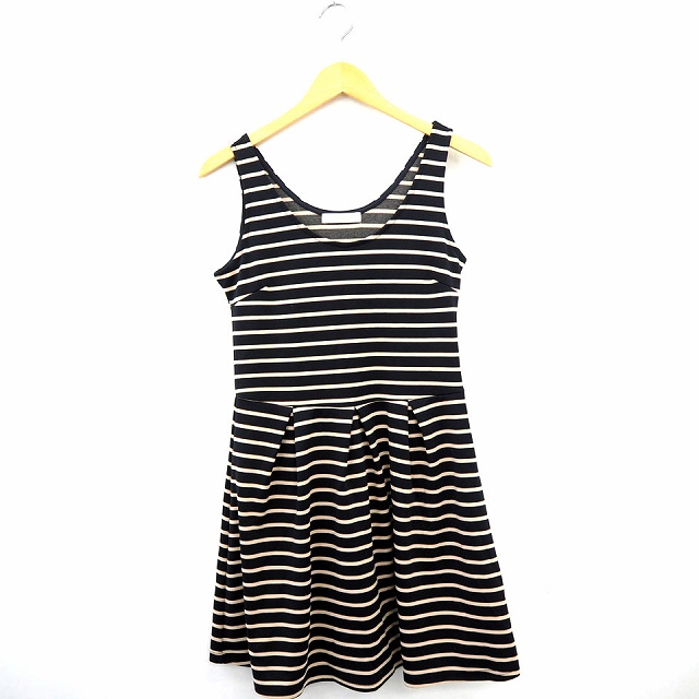 【中古】ビームスハート BEAMS HEART ワンピース ボーダー 丸首 ひざ丈 袖なし ノースリーブ ネイビー ベージュ 紺
