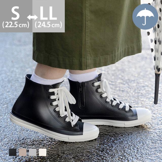 完全防水 レインシューズ 長靴 レディース レインスニーカー ハイカット スニーカー 黒 防水 雨 送料無料