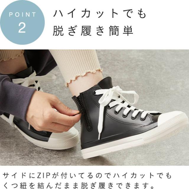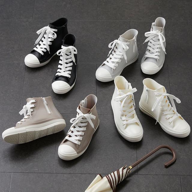 レインシューズ スニーカー 防水スニーカー 靴 シューズ ハイカットスニーカー レディース 痛くない 歩きやすい 蒸れない 防滑 滑りにくい 完全防水 ウォータープルーフ 防水 カジュアル レイン アウトドア 雨 梅雨 雪 お出かけ 旅行 ウォーキング 散歩 ローヒール ぺたんこ 3e ブラック ホワイト グレージュ グレー 黒 白 灰色 肌色 春 夏 秋 冬 定番 靴下 かわいい 可愛い おしゃれ カワイイ 大人かわいい 2cmヒール PVC 22.5cm 23.5cm 24cm 24.5cm S M L LL XL outletshoes アウトレットシューズ menue メヌエ welleg ウェレッグ