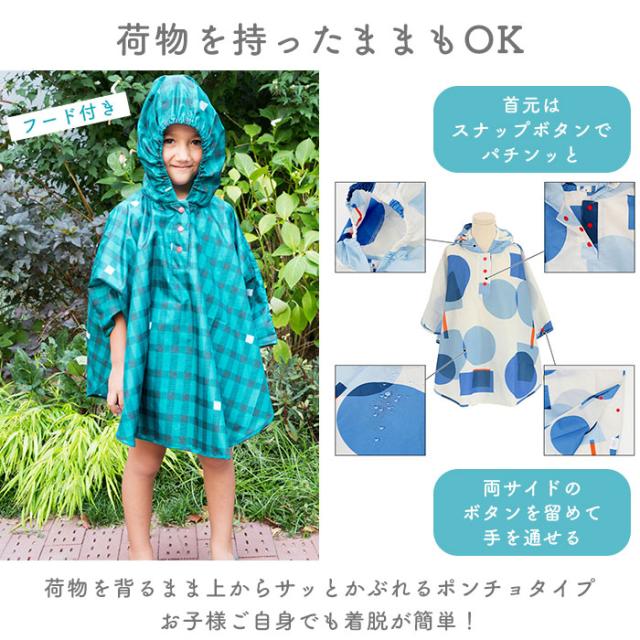 キッズ レイン コート ポンチョ 通販 レインポンチョ カッパ 雨具 サイズ S 80 90 100cm 子供用 KIDS キッズ 男の子 女の子 男女兼用 巾着付き おしゃれ 392plusm サンキューニプラスエム チェック 水玉 三国 ミクニ レイングッズ