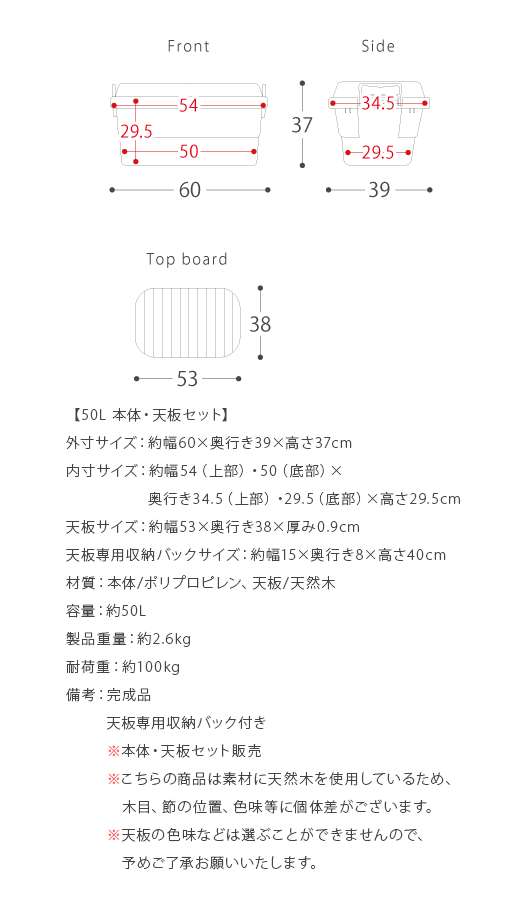 収納ボックス 大容量 50L アウトドア トランクカーゴ 収納コンテナ 収納ケース コンテナ 屋外収納 キャンプ収納 キャンプ 衣類収納 ガーデン収納 メンズライク シンプル TRUNK CARGO〔トランクカーゴ〕 50Lタイプ 本体・天板セット販売