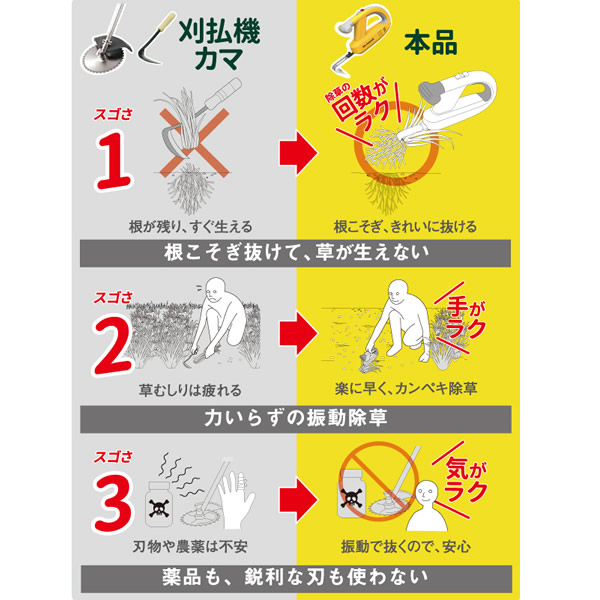 在庫あり 除草機 除草器 ムサシ 充電式 除草バイブレーター 草刈り機 除草機械 草むしり 雑草 根こそぎ