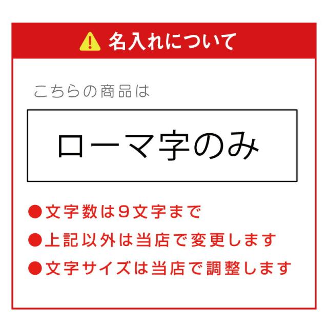 | ・ローマ字のみ ・文字数9文字まで ・上記以外は当店変更します ・文字サイズは当店で調整します |