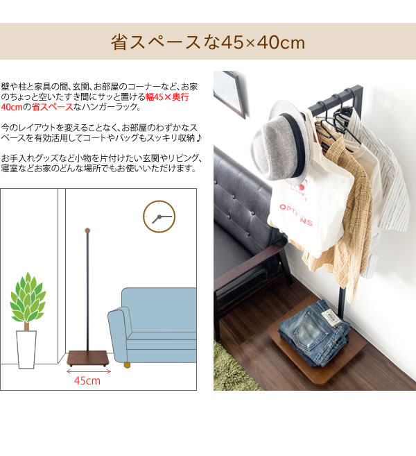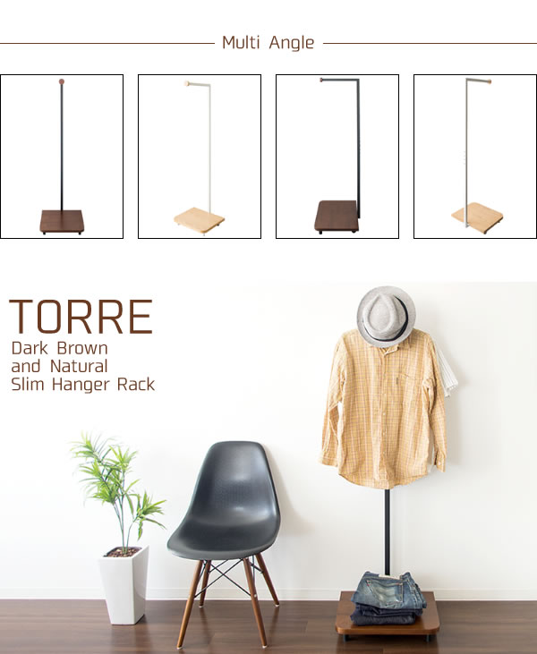 お部屋の隅や隙間に置けるコンパクトな幅45×奥行40cmのスリムハンガーラック『TORRE(トーレ)』。