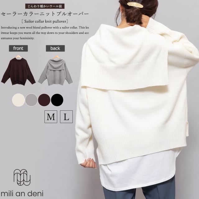 春新作 ウール混 セーラーカラーニットプルオーバー セーラー アクリル M L ニット プルオーバー レディース 春夏 ミリアンデニ t91007 ネコポス対応