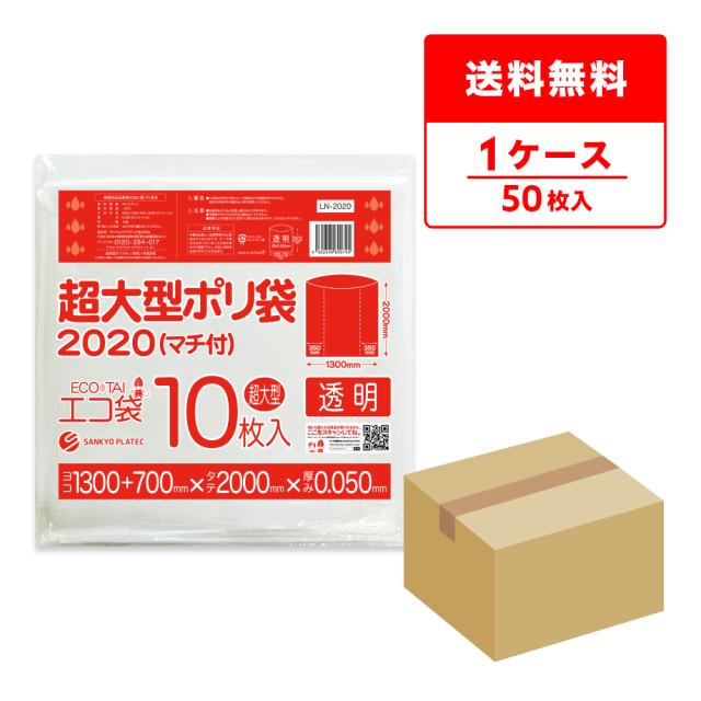 超大型ポリ袋 (マチ付き) 2000x2000 0.050mm厚 透明 10枚x5冊 LN-2020 / 送料無料 大きい ゴミ袋 ポリ袋 ビニール袋 特大 厚手 カバー 収納 ほこり除け 防水カバー バイクカバー サンキョウプラテック