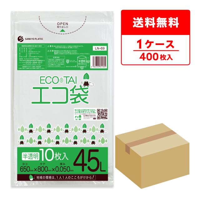 LN-69 ポリ袋 45リットル 0.050mm厚 半透明 10枚x40冊 / ゴミ袋 ごみ袋 送料無料