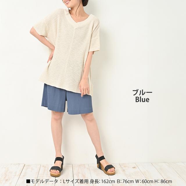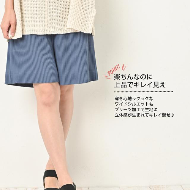 【メール便対応】アコーディオンプリーツ加工が柔らかい印象を与える、大人女子向けショートパンツ。