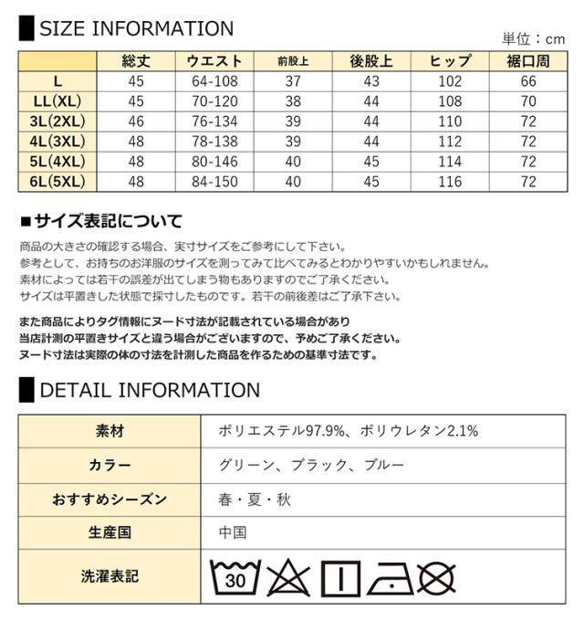 5L(4XL):総丈48 W80-146 前股上40 後股上45 H114 裾口周72