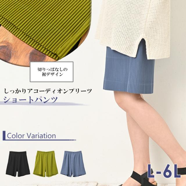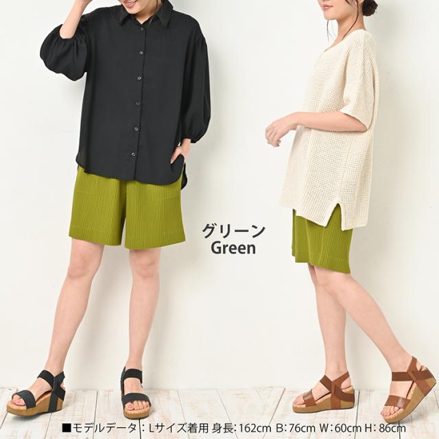 大きいサイズ レディース ショート丈ボトムス ショート丈プリーツパンツ リブパンツ ショートパンツ ショーパン フレアパンツ ワイドパンツ キュロットパンツ リラックスパンツ 4分丈 膝丈 膝上 アコーディオンプリーツ 細プリーツ プリーツ風 コーデュロイ風 ウエストゴム 上品 フェミニン 大人 カジュアル きれいめ おしゃれ 体型カバー ヒップカバー 人気 おすすめ 着まわし 着こなし コーデ 女性 30代 40代 50代 2021 ピスタチオグリーン 黒 緑 青 春 夏 秋 L LL 3L 4L 5L 6L XXXXXL 2XL 3XL 4XL 5XL 11号 13号 15号 17号 19号 21号 leg-ssa-bt1005