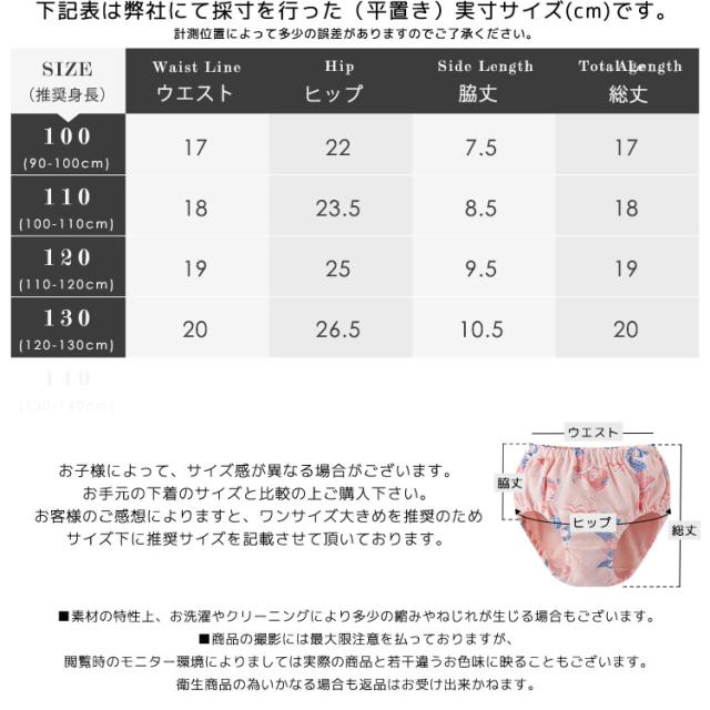 ※少し小さめの作りとなっています。 画像のサイズ表は平置き実寸となりますので、 お手元の下着と確認し、目安身長を参考ください。 |