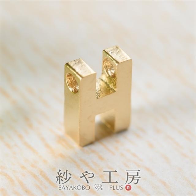 イニシャル パーツ チャーム H 7mm ゴールド 1個 1ヶ 約0.7cm チャームパーツ 大文字 通し穴付き 横穴 真鍮 アクセサリー アクセサリーパーツ パーツ 金属チャーム 金属パーツ 金属 イニシャルチャーム アルファベットチャーム さや工房 手作り
