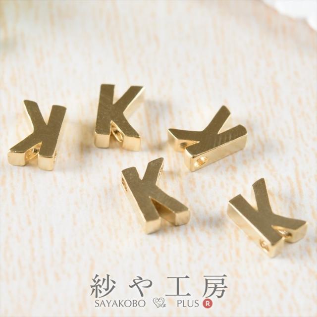 イニシャル パーツ チャーム K 7mm ゴールド 5個 5ヶ 約0.7cm チャームパーツ 大文字 通し穴付き 横穴 真鍮 アクセサリー アクセサリーパーツ パーツ 金属チャーム 金属パーツ 金属 イニシャルチャーム アルファベットチャーム さや工房 手作り