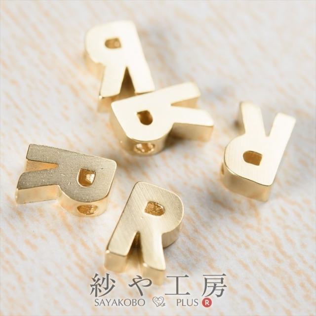 イニシャル パーツ チャーム R 7mm ゴールド 5個 5ヶ 約0.7cm チャームパーツ 大文字 通し穴付き 横穴 真鍮 アクセサリー アクセサリーパーツ パーツ 金属チャーム 金属パーツ 金属 イニシャルチャーム アルファベットチャーム さや工房 手作り
