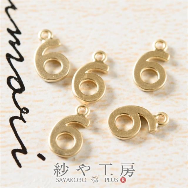 チャーム 数字チャーム 6 華奢 9mm マットゴールド 5個 5ヶ 約1cm チャームパーツ 数字 カン付き 丸カン付 真鍮 アクセサリー アクセサリーパーツ パーツ 金属チャーム 金属パーツ 金属 エレガント さや工房 手作り