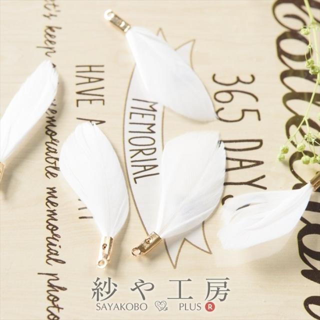チャーム 金具付きフェザー 本物の羽 30mm ホワイト 5個 5ヶ 約3cm カン付き 天然素材 カン付きパーツ 金具:真鍮 アクセサリーパーツ パーツ ウィングチャーム 羽根チャーム 材料 ナチュラル アクセサリー金具 さや工房 手作り