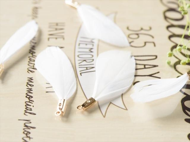 【内容詳細】チャーム 金具付きフェザー 本物の羽 30mm ホワイト 5個 5ヶ 約3cm カン付き 天然素材 カン付きパーツ 金具:真鍮 アクセサリーパーツ パーツ