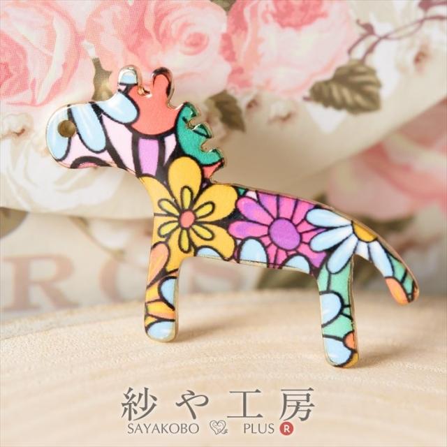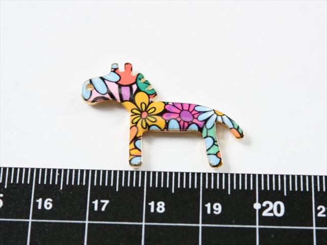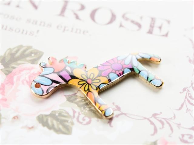 メタルチャーム 花柄馬 32mm イエロー 1個 1ヶ 通し穴付 金属アレルギー対応 アニマルチャーム 亜鉛 アクセサリーチャーム 約3.2cm