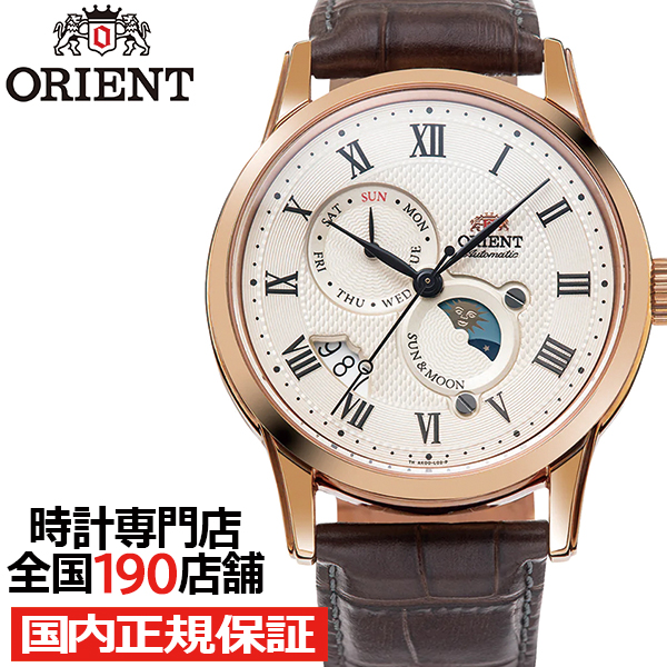 オリエント クラシック SUN&MOON サン&ムーン RN-AK0001S メンズ 腕時計 機械式 自動巻き 革バンド アンティークシルバー