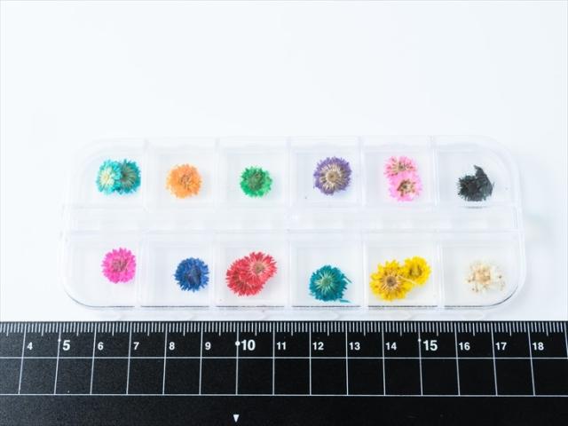 【内容詳細】ドライフラワー 封入パーツ 約10〜13mm 12色×各1 合計12個1セット 約1cm ジェルネイル 花 レジンパーツ レジン材料 アクセサリーパーツ パーツ