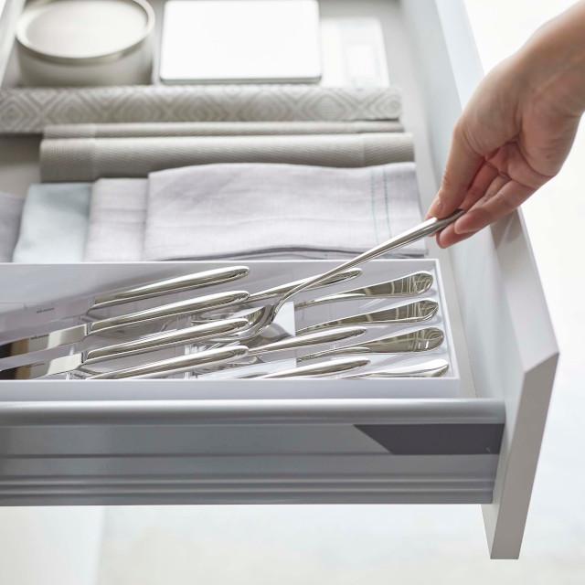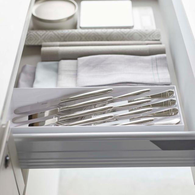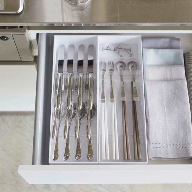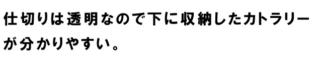 下に収納したカトラリーが分かりやすいように仕切りは透明になっています。