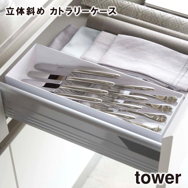 【取り寄せ発送】【tower】立体斜め カトラリーケース 5413 5414 \ 対象同梱で送料込み /【食器 キッチン カトラリー 食器棚 収納 収納道具 山崎実業】