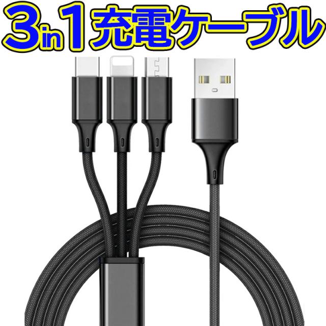 充電 ケーブル 3 in 1 USBケーブル 同時 充電 micro マイクロ iPhone USB Type-c タイプC USB-C端子 Android アンドロイド iPhone アイフォン