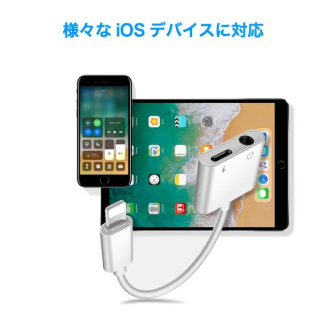 | 変換アダプタ | ●音楽・充電 これひとつで音楽を聴きながら充電することができます。充電切れに邪魔されることなく音楽や動画を存分に楽しむことができます。 ●小型 持ち運びに便利な超軽量設計。 ●機能 最新のiOSバージョンに対応しております。 |