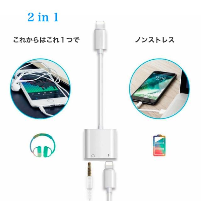 変換アダプタ 3.5mm イヤホンジャック 同時 イヤホン 新iOS対応 iPhone 14 14Plus 14Pro SE3 13 12 mini Pro Max SE2 11 11Pro 11Pro XS XR 7 8 アイフォン 音楽・イヤホン・充電 充電ケーブル イヤホンジャック 2 in 1