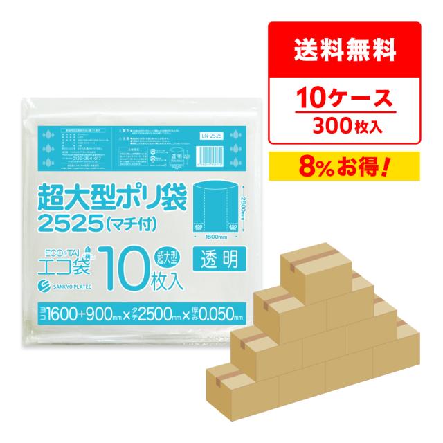 【まとめて10ケース】超大型ポリ袋 (マチ付き) 2500x2500 0.050mm厚 透明 10枚x3冊x10箱 LN-2525-10 / 送料無料 大きい ゴミ袋 ポリ袋 ビニール袋 特大 厚手 収納 ほこり除け 防水カバー サンキョウプラテック