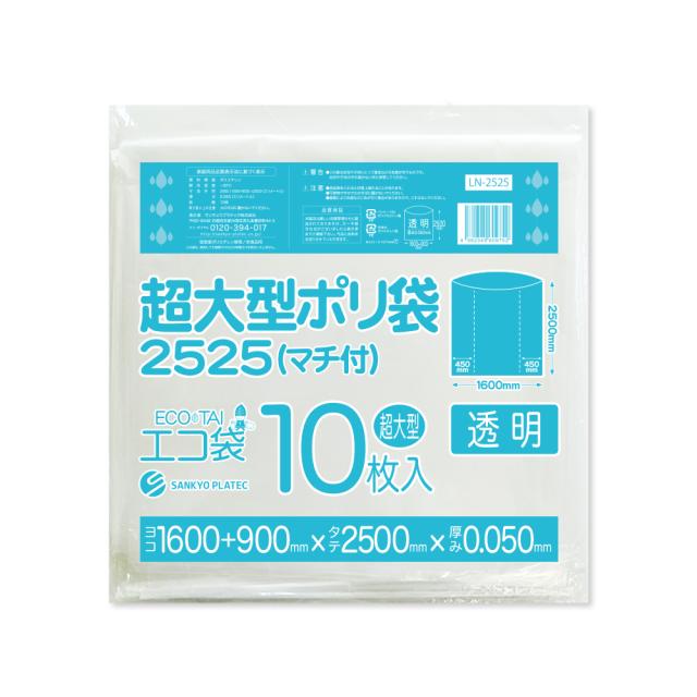 【バラ販売】超大型ポリ袋 (マチ付き) 2500x2500 0.050mm厚 透明 10枚 LN-2525bara / 大きい ゴミ袋 ポリ袋 ビニール袋 特大 厚手 カバー 収納 ほこり除け 防水カバー サンキョウプラテック