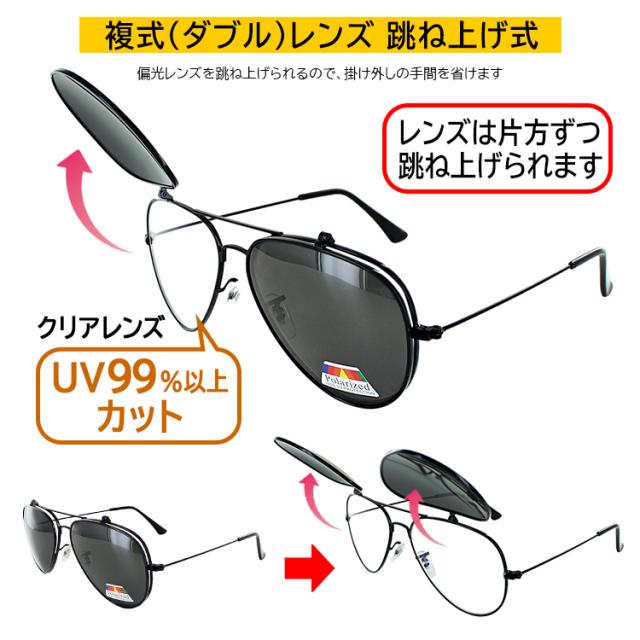 偏光サングラス 複式(ダブル)レンズ 跳ね上げ式【wz001p】