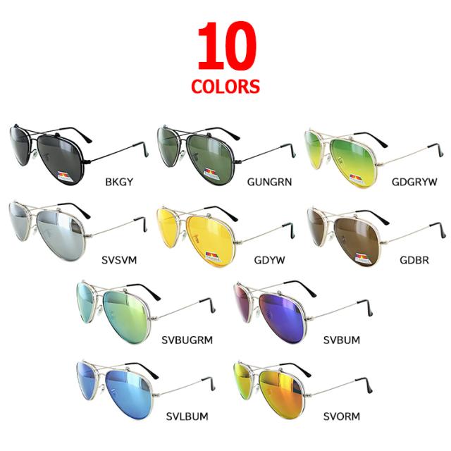 サングラス 偏光 UVカット 複式レンズ 跳ね上げ式 ティアドロップ 釣り ドライブ 運転 車 wz001p カラーレンズ ミラーレンズ ケース付