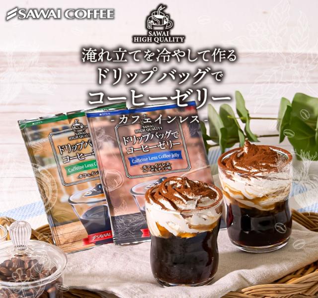 | この商品は、簡単に作れるカフェインレスのドリップバッグ式コーヒーゼリーです。お湯を注ぐだけで、誰でも手軽にトロトロのコーヒーゼリーが楽しめます。カフェイン97%カットで、夜でも安心して食べられるので、家族みんなで楽しめるデザートです。 1. 誰でも簡単に作れる手軽さ このコーヒーゼリーは、お湯を注いでドリップするだけで簡単に作れます。忙しい時でもすぐにデザートが作れるので、家族みんなで楽しむことができます。冷蔵庫で冷やすだけで、トロトロぷるるんのゼリーが完成。特別な調理器具やスキルは必要ありません。初心者でも安心して作れるので、子どもと一緒に楽しむこともできます。 2. カフェイン97%カットで安心 このコーヒーゼリーは、カフェインを97%カットしたカフェインレスコーヒーを使用しているので、就寝前やお子さまでも安心して食べられます。スイス・ウォータープロセスを使用し、化学薬品を一切使わずにカフェインを除去しているため、コーヒー本来の風味を損なわず、健康志向の方にもぴったりです。 3. 焼き立ての香りをそのままゼリーに 澤井珈琲の焙煎技師たちが丁寧に焙煎した新鮮なコーヒー豆を使用。ドリップバッグに詰められたコーヒーの香りを逃がさないよう、特殊なアルミフィルムでしっかりと包み込んでいます。お口に入れた瞬間、芳醇な香りとコクが広がり、贅沢な味わいが楽しめます。コーヒー好きな方はもちろん、普段カフェインを控えている方でも、美味しいコーヒーゼリーを楽しむことができます。 | |