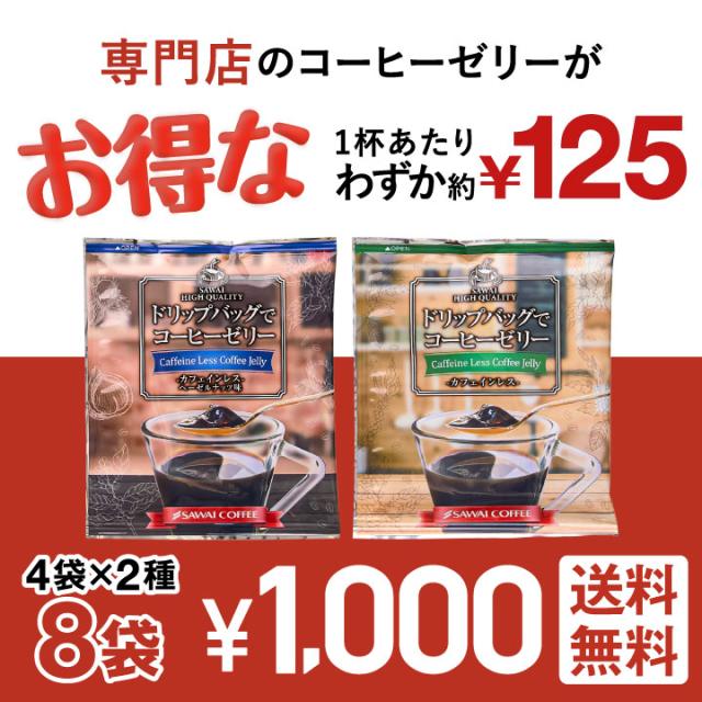 【澤井珈琲】送料無料 1000円ポッキリ ドリップバッグでコーヒーゼリー 2種 8杯分入り(珈琲/ドリップコーヒー/個包装/ドリップパック) ポイント消化