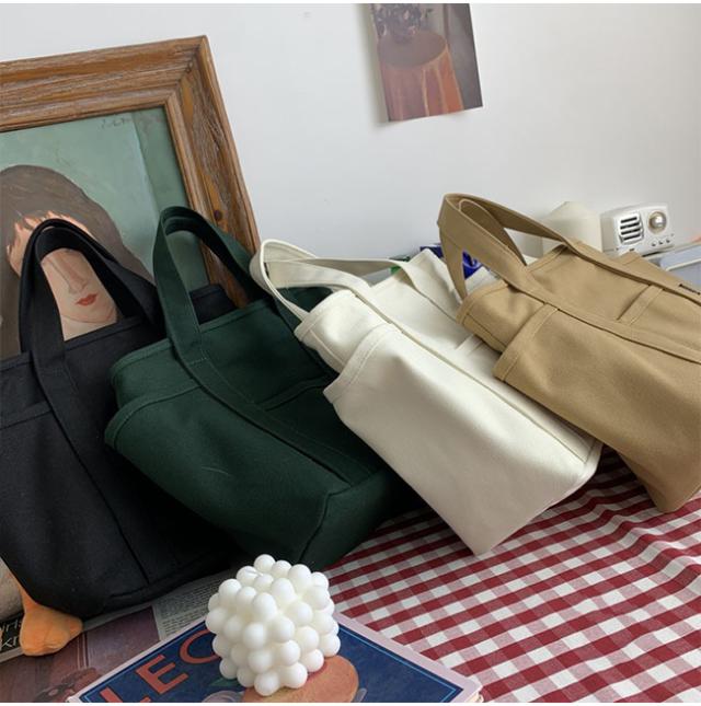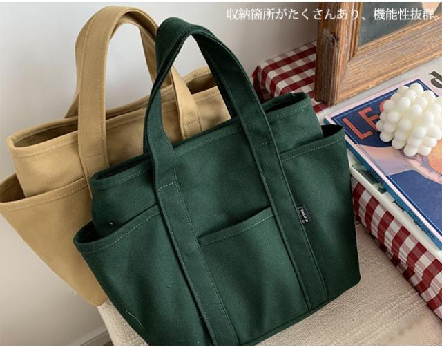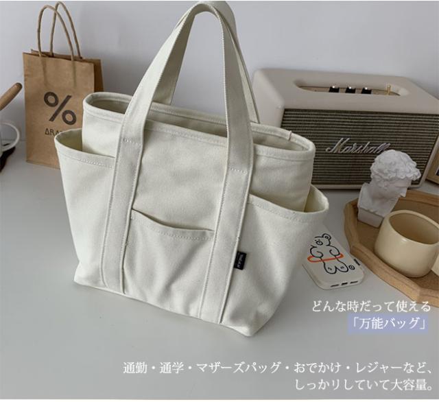 トートバッグ レディース キャンバス ズック 手提げ サイドポケット 機能的 多ポケット大容量 通勤 通学 エコバッグ