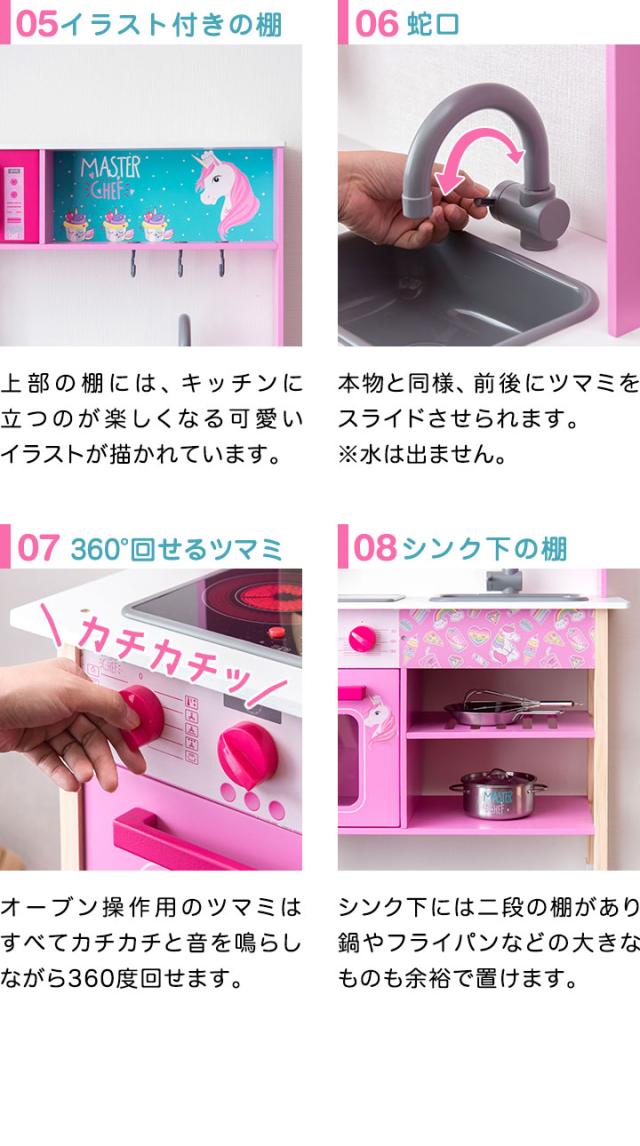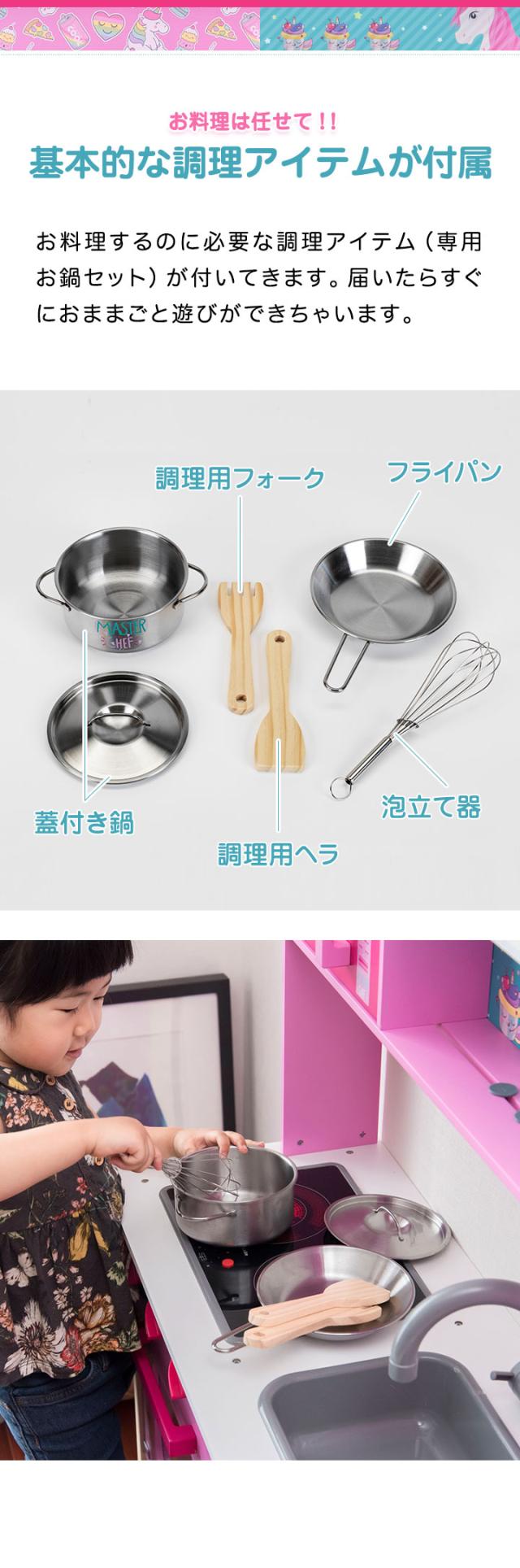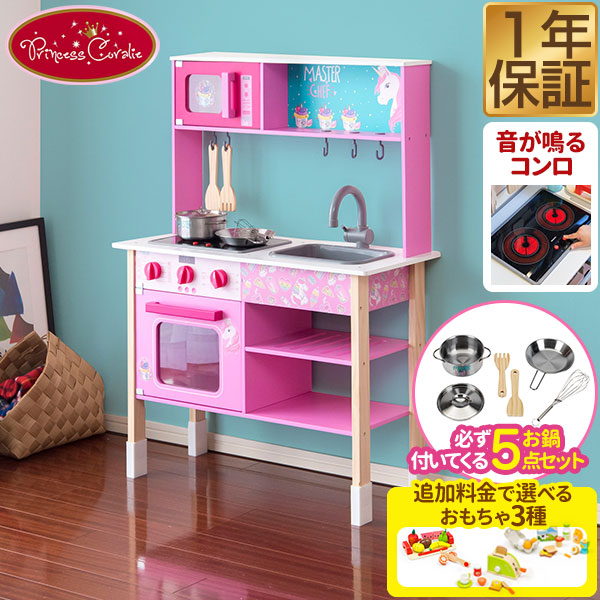 Princess Coralie ままごと キッチン 木製 お鍋5点セット付き 選べる食材/おもちゃセットも 子供 子ども 3歳〜 ごっこ遊び ままごとキッチン ままごとセット ままごとキッチンセット 台所 オーブン レンジ お料理 知育玩具 かわいい 1年保証 送料無料