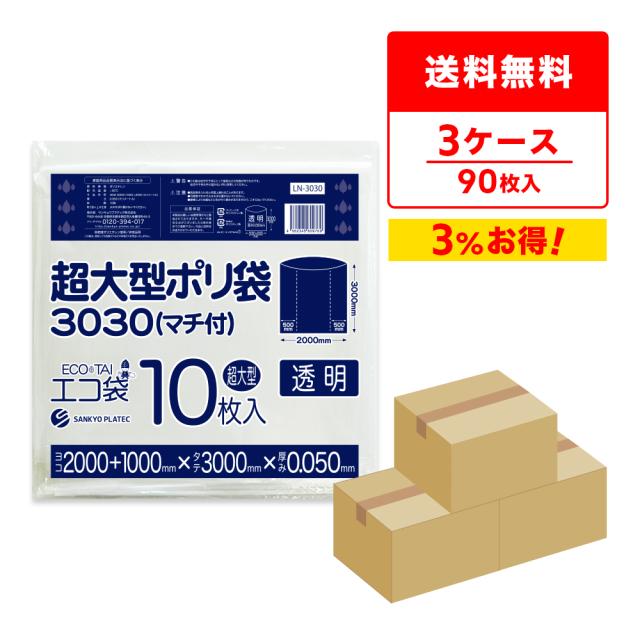 【まとめて3ケース】LN-3030-3 超大型ポリ袋 (マチ付き) 3000x3000 0.050mm厚 透明 10枚x3冊x3箱 / ゴミ袋 ごみ袋 送料無料