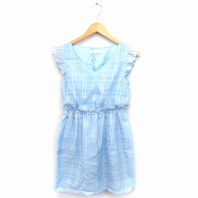 【中古】マーキュリーデュオ MERCURYDUO ワンピース チェック フリル ノースリーブ ひざ丈 F ライトブルー /FT38